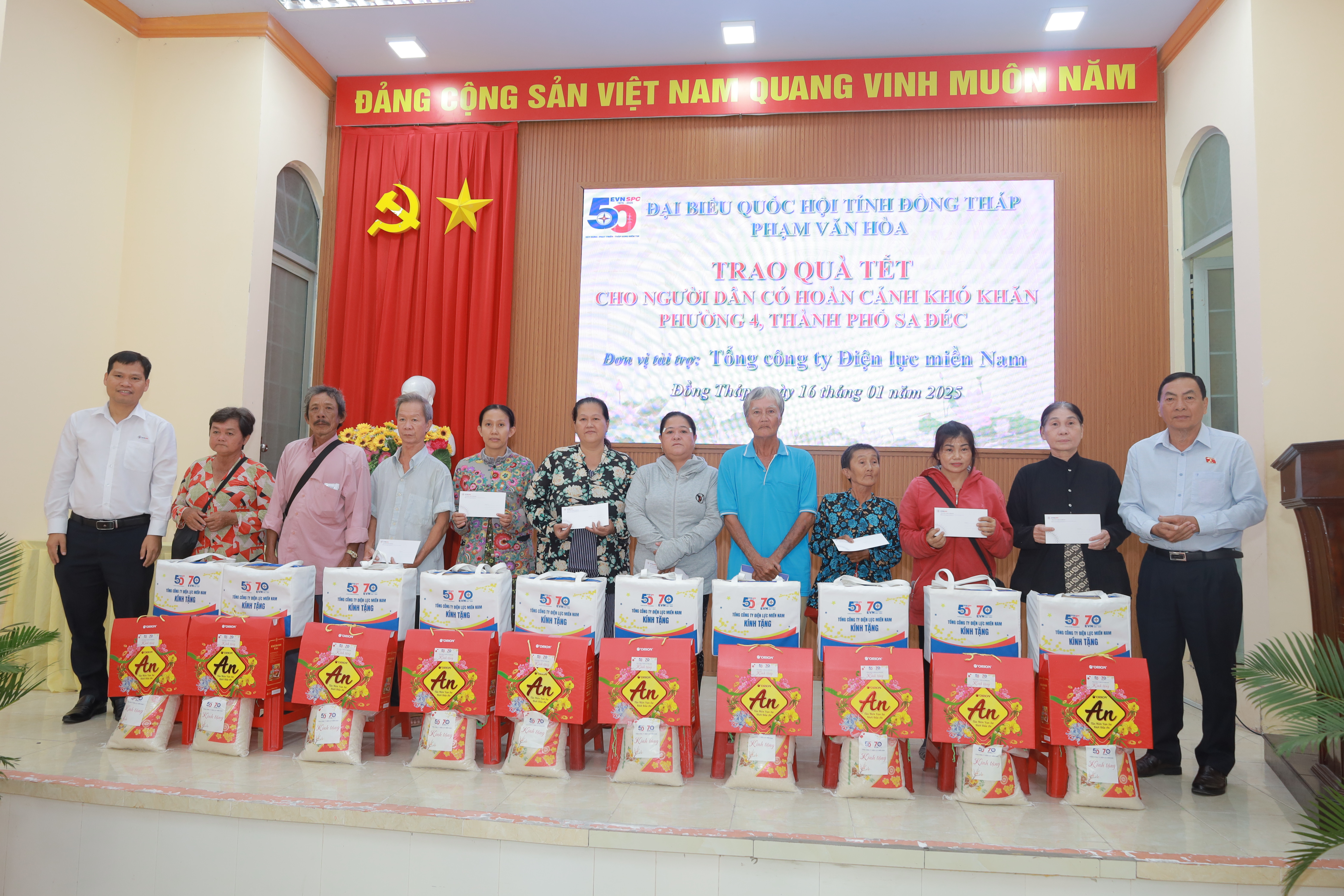 Ban nữ công xin chân thành cảm ơn tất cả các thành viên trong gia đình PC Đồng Tháp đã tạo điều kiện và đóng góp tiền, của cũng như công sức, mang đến niềm vui cho những người neo đơn, bệnh tật.