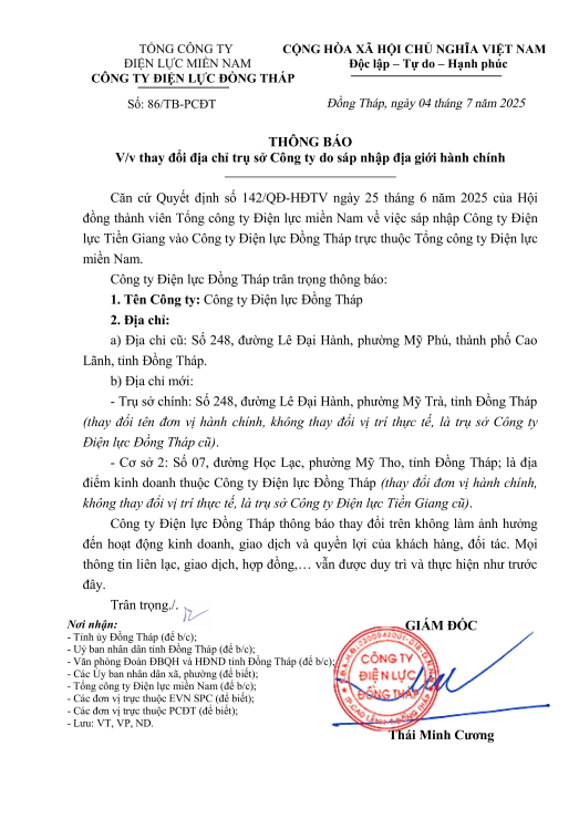 Trong ngày 18/03/2023, Công ty Điện lực Đồng Tháp đã trao tặng 20 phần quà an sinh xã hội cho trẻ em, học sinh nghèo, có hoàn cảnh khó khăn trên địa bàn tỉnh Đồng Tháp trị giá 20 triệu đồng. Đây cũng là một trong những chuỗi hoạt động của Công ty Điện lực Đồng Tháp phối hợp với Tỉnh Đoàn thực hiện trong năm 2023, bao gồm các nội dung như: (i) Tổ chức lớp bồi huấn cán bộ Đoàn viên chủ chốt tuyên truyền công tác sử dụng điện an toàn, tiết kiệm hiệu quả, công tác chuyển đổi số thanh toán không dùng tiền mặt, hướng dẫn cài app CSKH EVNSPC/Zalo EVNSPC; (ii) Tuyên truyền trực tiếp công tác sử dụng điện an toàn, tiết kiệm hiệu quả; vận động đoàn viên, người dân công tác chuyển đổi số, sử dụng App CSKH EVNSPC, Zalo EVNSPC của ngành Điện, tuyên truyền về việc chủ trương thanh toán không dùng tiền mặt và phát tờ rơi tuyên truyền công tác sử dụng điện an toàn, tiết kiệm hiệu quả cho các hiệp hội thanh niên, đoàn viên thanh niên; (iii) Thực hiện các công trình thắp sáng đường quê bằng hệ thống tấm pin năng lượng mặt trời trên địa bàn Tỉnh; (iv) Hỗ trợ cho các trẻ em, học sinh/gia đình thực hiện tốt trong công tác tuyên truyền sử dụng điện an toàn, tiết kiệm hiệu quả (có hoàn cảnh khó khăn).