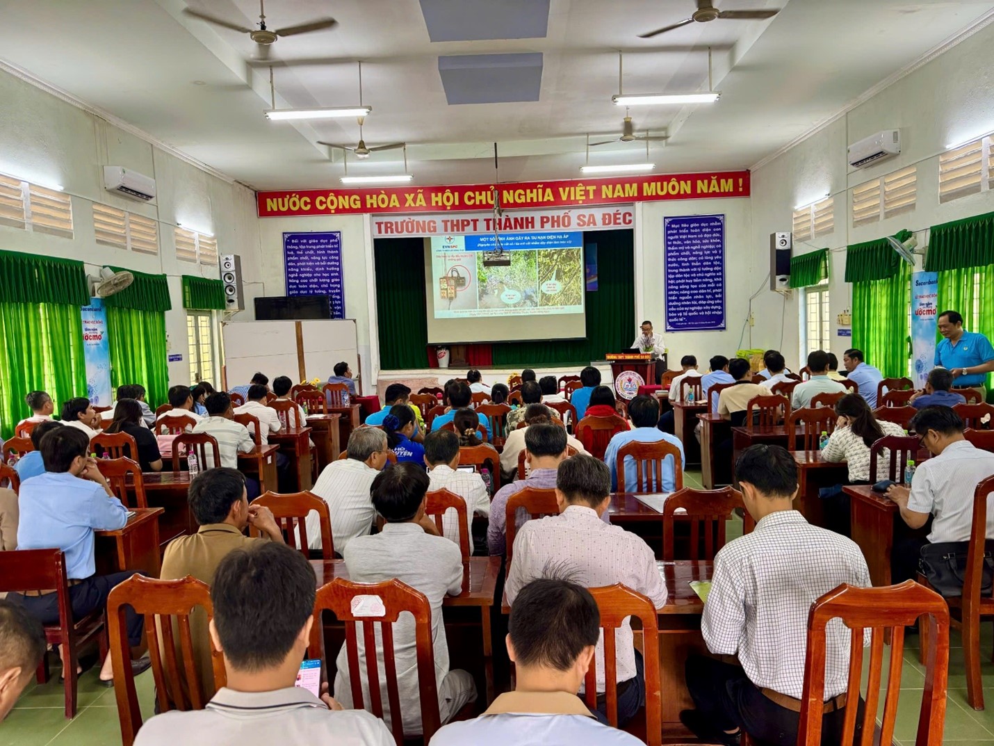 Thực hiện theo Kế hoạch phối hợp số 629/KHPH-PCĐT-TĐTN ngày 24 tháng 02 năm 2023 giữa Công ty Điện lực Đồng Tháp và Đoàn TNCS Hồ Chí Minh tỉnh Đồng Tháp phối hợp tổ chức các hoạt động tuyên truyền vận động sử dụng điện an toàn, tiết kiệm, hiệu quả năm 2023. Vừa qua, Công ty Điện lực Đồng Tháp phối hợp cùng Tỉnh đoàn Đồng Tháp đã tổ chức buổi tuyên truyền đến người dân và doanh nghiệp sử dụng điện tiết kiệm và hiệu quả, đặc biệt tuyên truyền hưởng ứng Giờ Trái đất năm 2023.