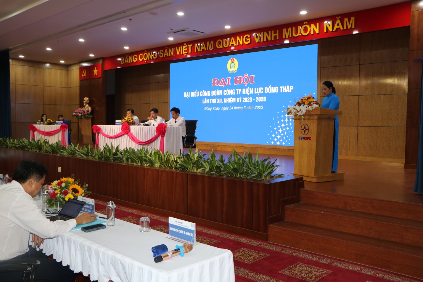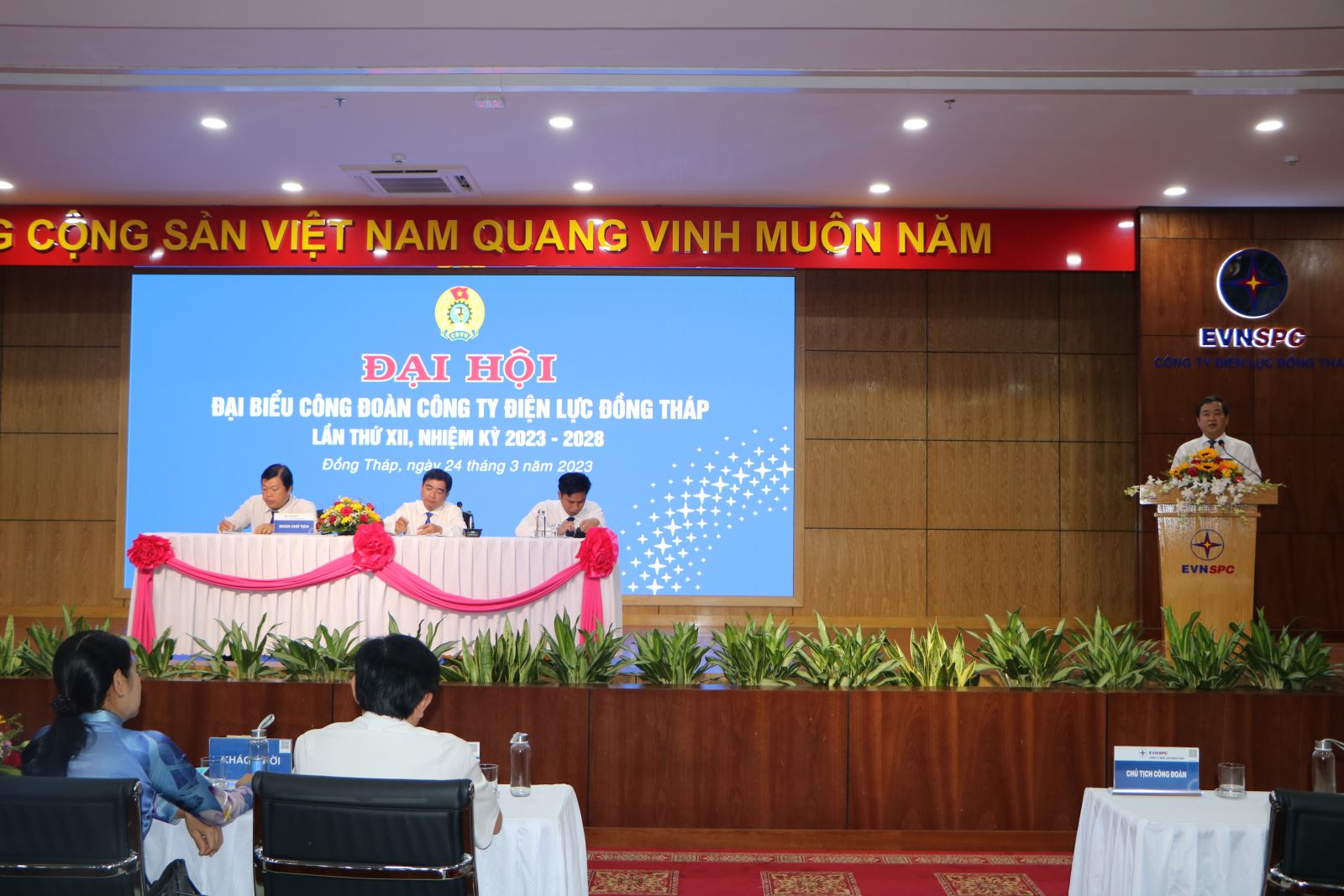 Đến tham dự và chỉ đạo Đại hội có bà Nguyễn Thị Thu Ba – Phó Chủ tịch Liên đoàn lao động tỉnh Đồng Tháp; ông Nguyễn Hoàng Long – Cụm trưởng Cụm DN Trung ương trên địa bàn tỉnh Đồng Tháp. Về phía Công đoàn Tổng Công ty Điện lực miền Nam có ông Lê Xuân Thái – Uỷ viên BTV Công đoàn Điện lực Việt Nam – Chủ tịch Công đoàn Tổng Công ty; ông Nguyễn Thanh Hoàng – Phó Chủ tịch Công đoàn Tổng Công ty Điện lực miền Nam. Về phía Công ty Điện lực Đồng Tháp có ông Đào Hữu Điền – Bí thư Đảng ủy, Giám đốc Công ty, ông Lê Văn Chí – Phó Bí thư Đảng ủy – Phó Giám đốc Công ty, ông Nguyễn Chí Thanh – Phó Giám đốc Công ty, ông Hà Thanh Phong – Phó Giám đốc – Chủ tịch Công đoàn Công ty và 120 đại biểu được bầu từ Đại hội Công đoàn các Công đoàn bộ phận và Tổ công đoàn trực thuộc.