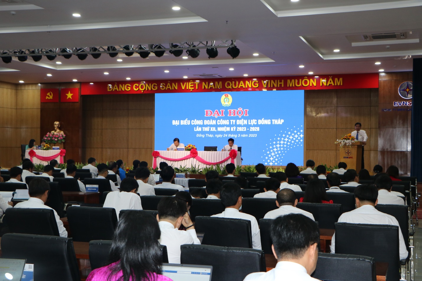 Ngày 24/3 vừa qua, Công đoàn cơ sở Công ty Điện lực Đồng Tháp đã tổ chức Đại hội đại biểu Công đoàn cơ sở Công ty lần thứ XII, nhiệm kỳ 2023 – 2028 nhằm đánh giá tình hình hoạt động công đoàn trong nhiệm kỳ vừa qua và đề ra phương hướng hoạt động công đoàn nhiệm kỳ 2023 - 2028, đồng thời bầu Ban Chấp hành Công đoàn cơ sở, nhiệm kỳ 2023 - 2028.