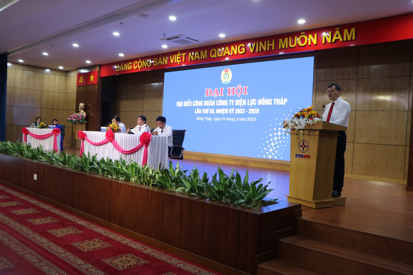 Thay mặt Ban Thường vụ Công đoàn Tổng công ty Điện lực miền Nam, ông Lê Xuân Thái, bày tỏ sự thống nhất cao với tổng kết, đánh giá tại Đại hội. Tổ chức Công đoàn đã phát huy được vai trò chăm lo và bảo vệ quyền, lợi ích chính đáng của người lao động trong Công ty. Ông cũng đánh giá cao về nhận thức BCH Công đoàn Công ty, nhiệm kỳ 2018-2023 về 5 hạn chế, khuyết điểm trong công tác tuyên truyền, vận động, công tác tổ chức, sơ tổng kết trong phong trào thi đua, công tác đề tài sáng kiến, công tác phát triển Đảng và công tác an toàn vệ sinh lao động, xác định rõ 4 nguyên nhân và tiếp thu sâu sắc và rút ra 5 bài học kinh nghiệm làm cơ sở đưa vào giải pháp khắc phục thực hiện trong nhiệm kỳ tới. Những nỗ lực, cố gắng của tập thể BCH công đoàn cơ sở Công ty nhiệm kỳ qua, đã được các cấp Tổng liên đoàn, UBND tỉnh, Liên đoàn lao động tỉnh, Công đoàn Điện lực Việt Nam, Công đoàn Tổng Công ty khen thưởng, đánh giá Công đoàn cở sở Công ty Điện lực Đồng Tháp hoàn thành xuất sắc nhiệm vụ. Ông Lê Xuân Thái cũng ghi nhận và biểu dương những kết quả mà Công đoàn cơ sở Công ty Điện lực Đồng Tháp đạt được trong nhiệm kỳ qua, đặc biệt là sự tin tưởng, ủng hộ của cán bộ Công đoàn các cấp, sự đoàn kết rất cao của BCH, BTV và đồng chí Chủ tịch công đoàn cơ sở. Ngoài ra, ông yêu cầu quán triệt sâu sắc các nhiệm vụ trọng tâm của hoạt động của Công đoàn trong nhiệm kỳ tới.