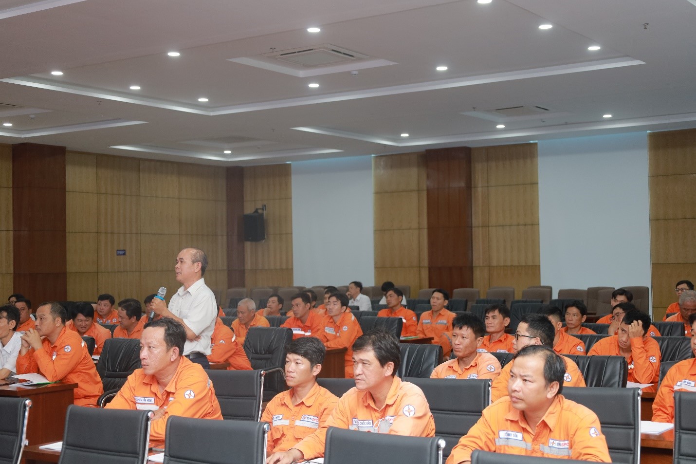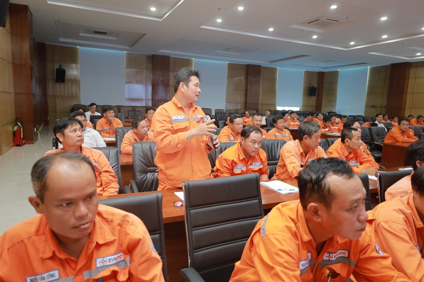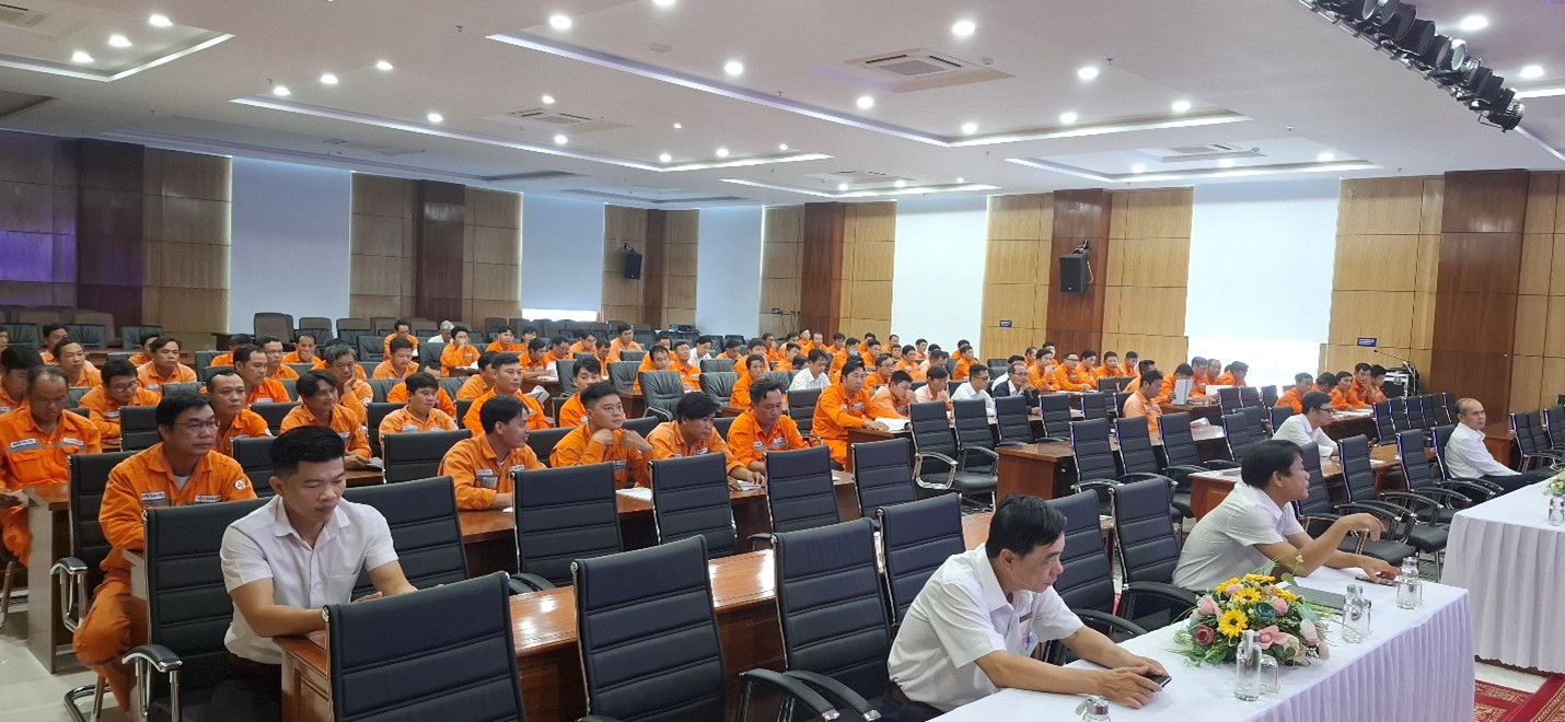 Trong khuôn khổ chương trình huấn luyện, các học viên được Thầy Dương Quang Vinh – Giảng viên Trường Cao đẳng Điện lực TP.HCM được phổ biến, hướng dẫn cụ thể các nội dung gồm Sơ đồ hệ thống điện, các yêu cầu bảo đảm an toàn cho hệ thống điện. Biện pháp tổ chức để bảo đảm an toàn khi tiến hành công việc: Khảo sát, lập biên bản hiện trường (nếu cần); lập kế hoạch; đăng ký lịch công tác; tổ chức đơn vị công tác;làm việc theo phiếu công tác hoặc lệnh công tác; thủ tục cho phép làm việc; giám sát an toàn trong thời gian làm việc; thủ tục kết thúc công việc và đóng điện trở lại. Biện pháp kỹ thuật chuẩn bị nơi làm việc an toàn: Cắt điện và ngăn chặn có điện trở lại nơi làm việc; kiểm tra không còn điện; nốiđất; lập rào chắn, thiết lập vùng làm việc an toàn, treo biển cấm, biển báo.Cách nhận biết và biện pháp loại trừ nguy cơ gây sự cố, rủi ro và tai nạn tại nơi làm việc và phương pháp tách nạn nhân ra khỏi nguồn điện, sơ cứu người bị tai nạn điện. Tính năng, tác dụng, cách sử dụng, cách bảo quản, quy định về kiểm tra (thí nghiệm, kiểm định) các trang thiết bị an toàn, phương tiện, dụng cụ làm việc phù hợp với công việc của người lao động.