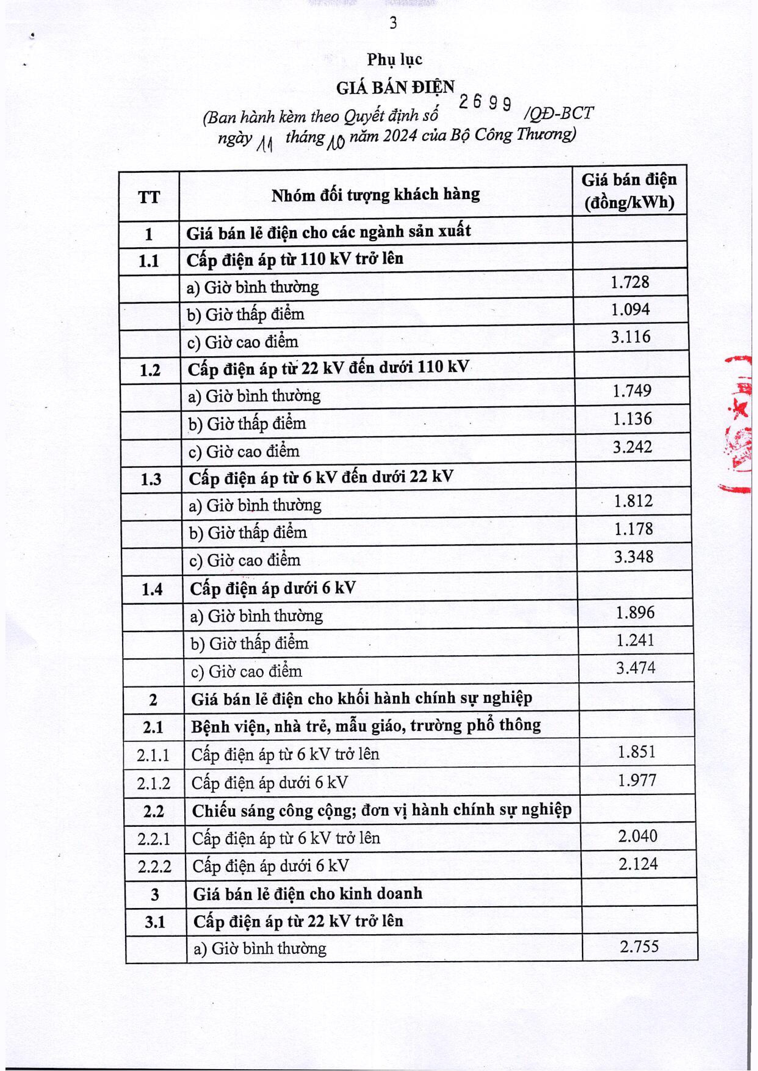 Quyết định số 2699/QĐ-BCT Của Bộ Công Thương về việc Quy định về giá bán điện