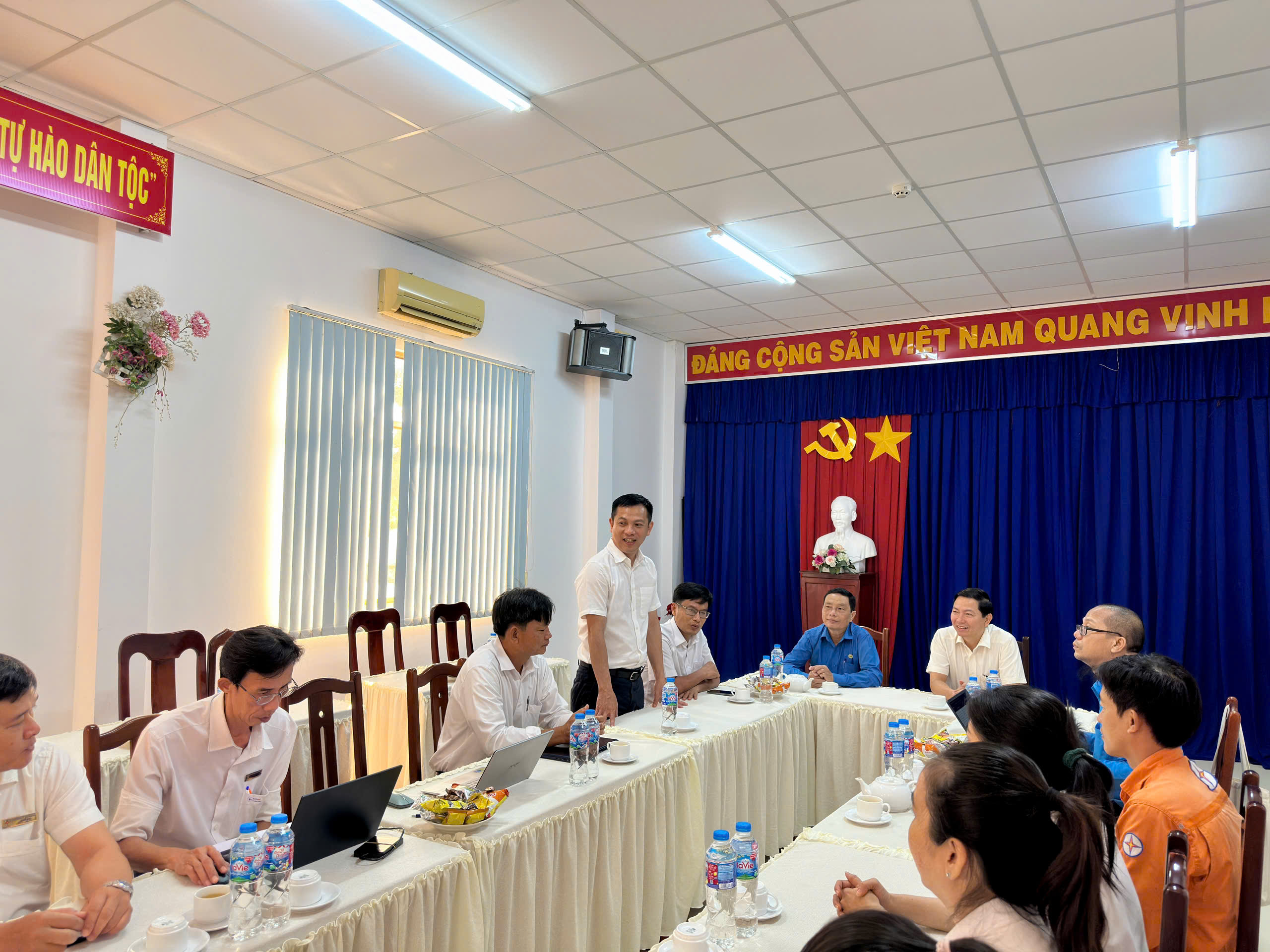 Tham dự buổi gặp gỡ có Đồng chí Phạm Nguyễn Minh Châu – Phó Chủ tịch Công đoàn Tổng công ty Điện lực miền Nam; Đồng chí Trần Quang Tâm – Chủ tịch Công đoàn cơ sở Công ty Điện lực Đồng Tháp cùng Ban lãnh đạo và tập thể CBCNV Đội Quản lý điện Nha Mân.