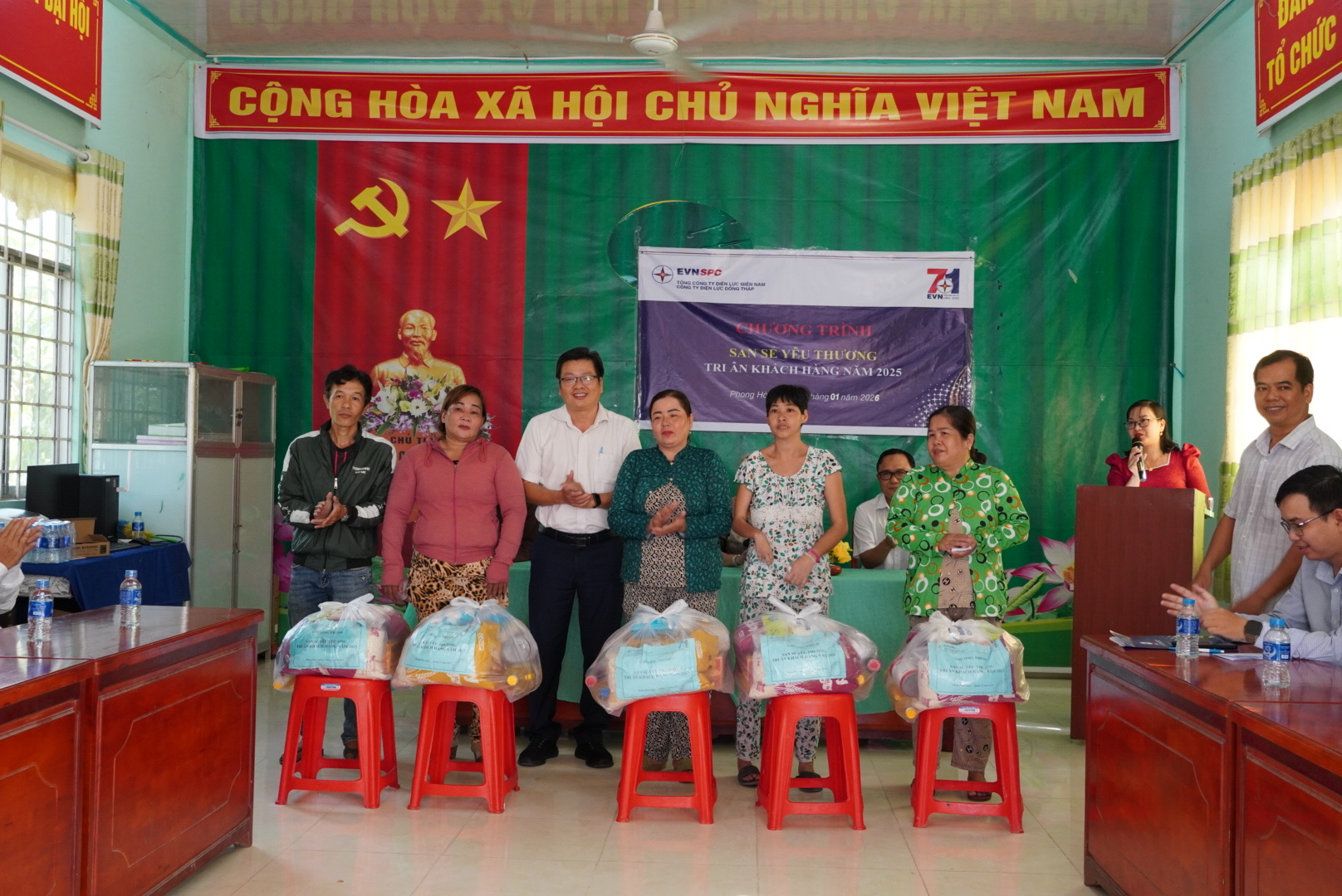 Buổi lễ vinh dự có sự tham gia của bà Nguyễn Thị Bích Thuận – Bí thư Đảng ủy xã Phong Hòa, tỉnh Đồng Tháp; Ông Nguyễn Chí Thanh – Phó Giám đốc Công ty Điện lực Đồng Tháp, Ông Phạm Hữu Linh Khoa – Bí thư Đoàn thanh niên Công ty. Cùng đại diện Đội Quản lý điện Lai Vung, lãnh đạo UBND và các ban ngành đoàn thể xã Phong Hòa.