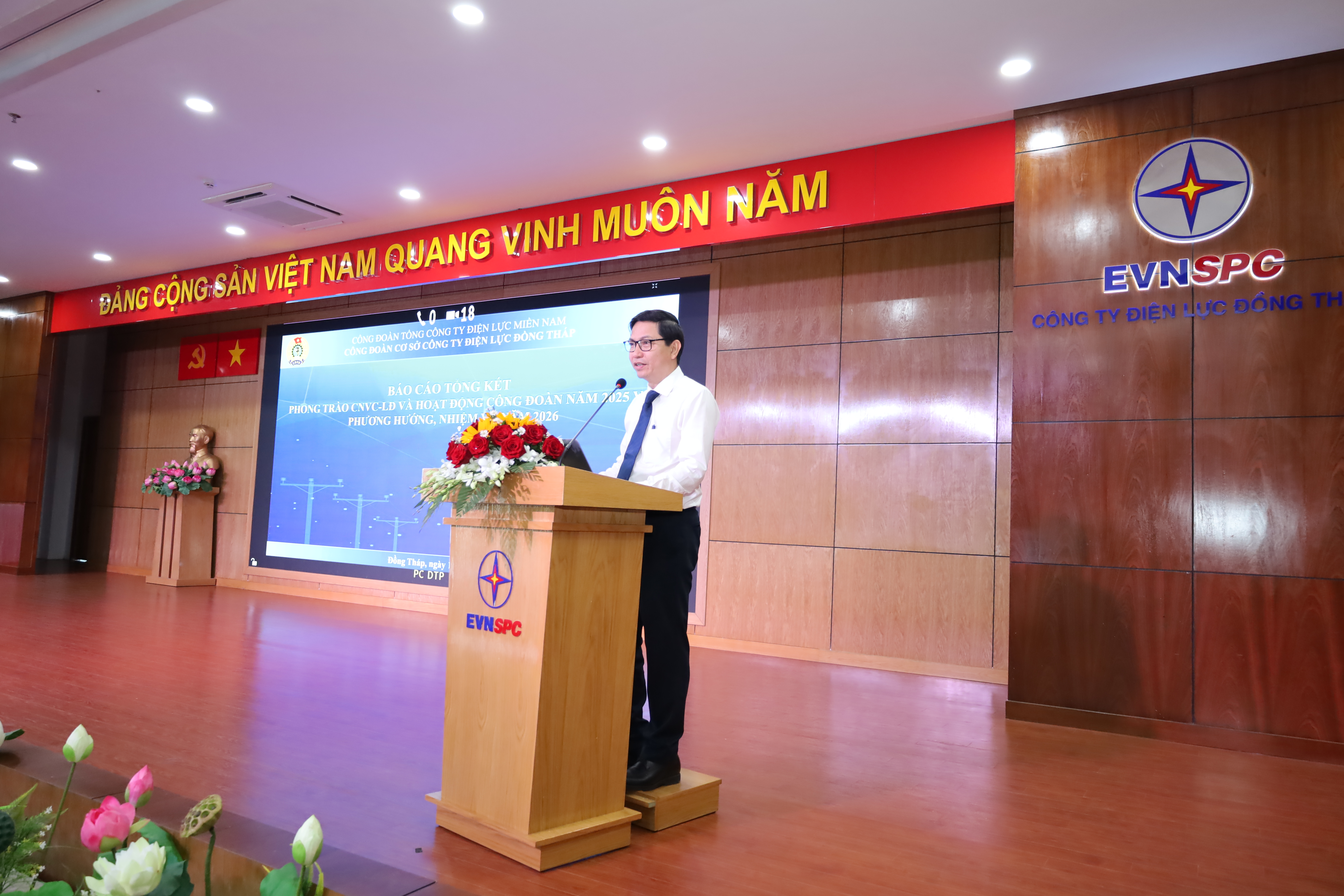 Ngày 15/01/2026, Công ty Điện lực Đồng Tháp (PC Đồng Tháp) tổ chức Hội nghị Tổng kết công tác xây dựng Đảng, hoạt động Công đoàn năm 2025; Hội nghị Người lao động năm 2026, tổng kết hoạt động sản xuất kinh doanh năm 2025 và triển khai nhiệm vụ năm 2026. Hội nghị được tổ chức theo hình thức trực tiếp kết hợp trực tuyến, bảo đảm lan tỏa đầy đủ thông tin đến toàn thể người lao động trong Công ty.