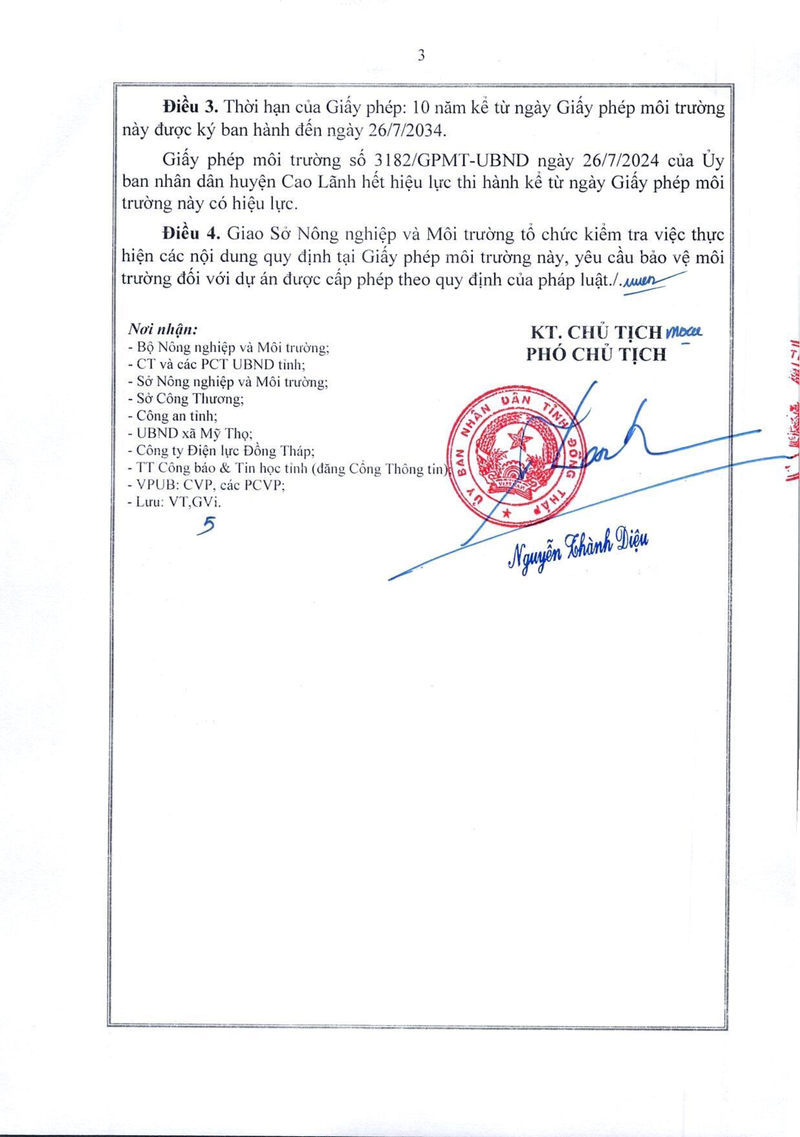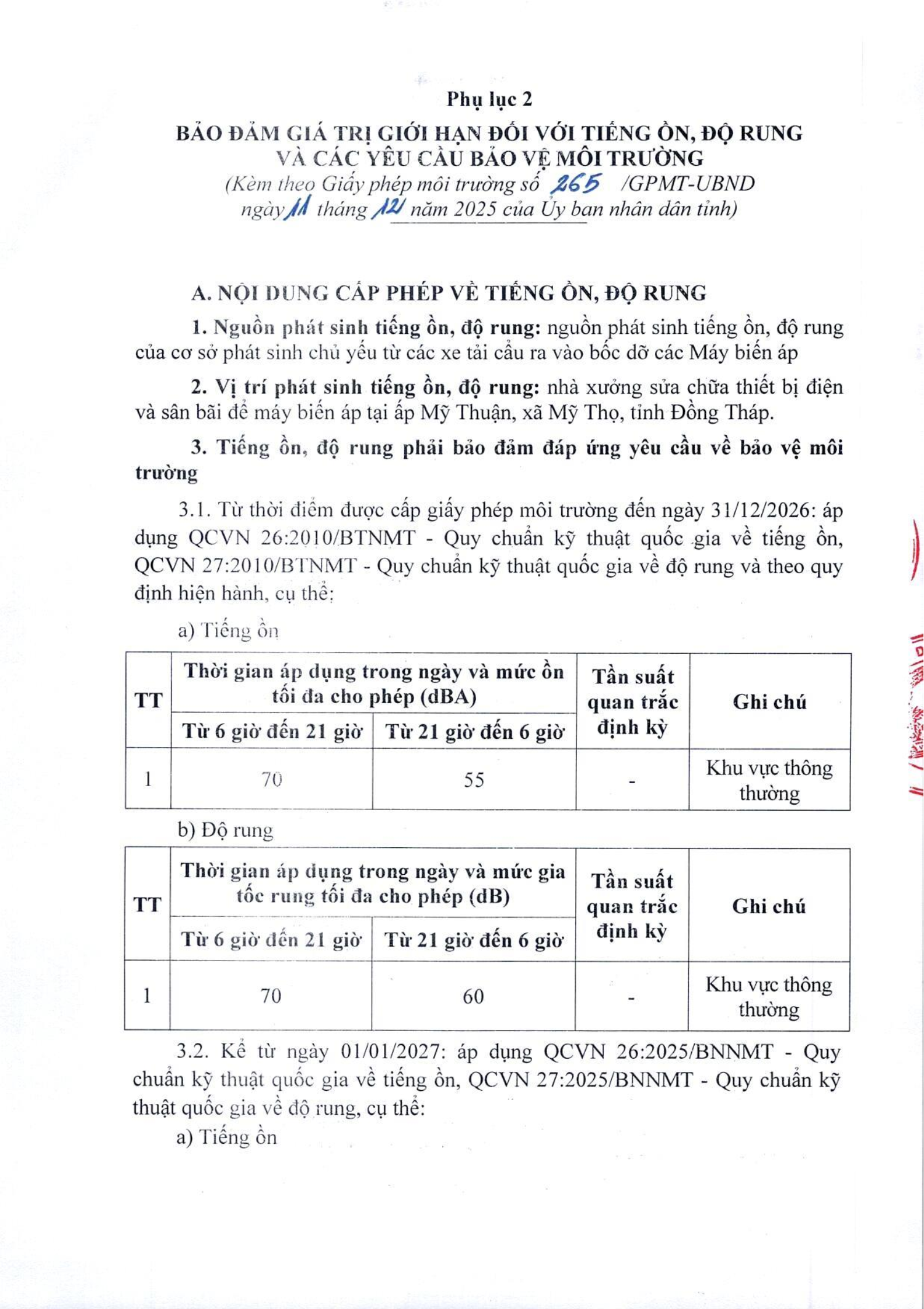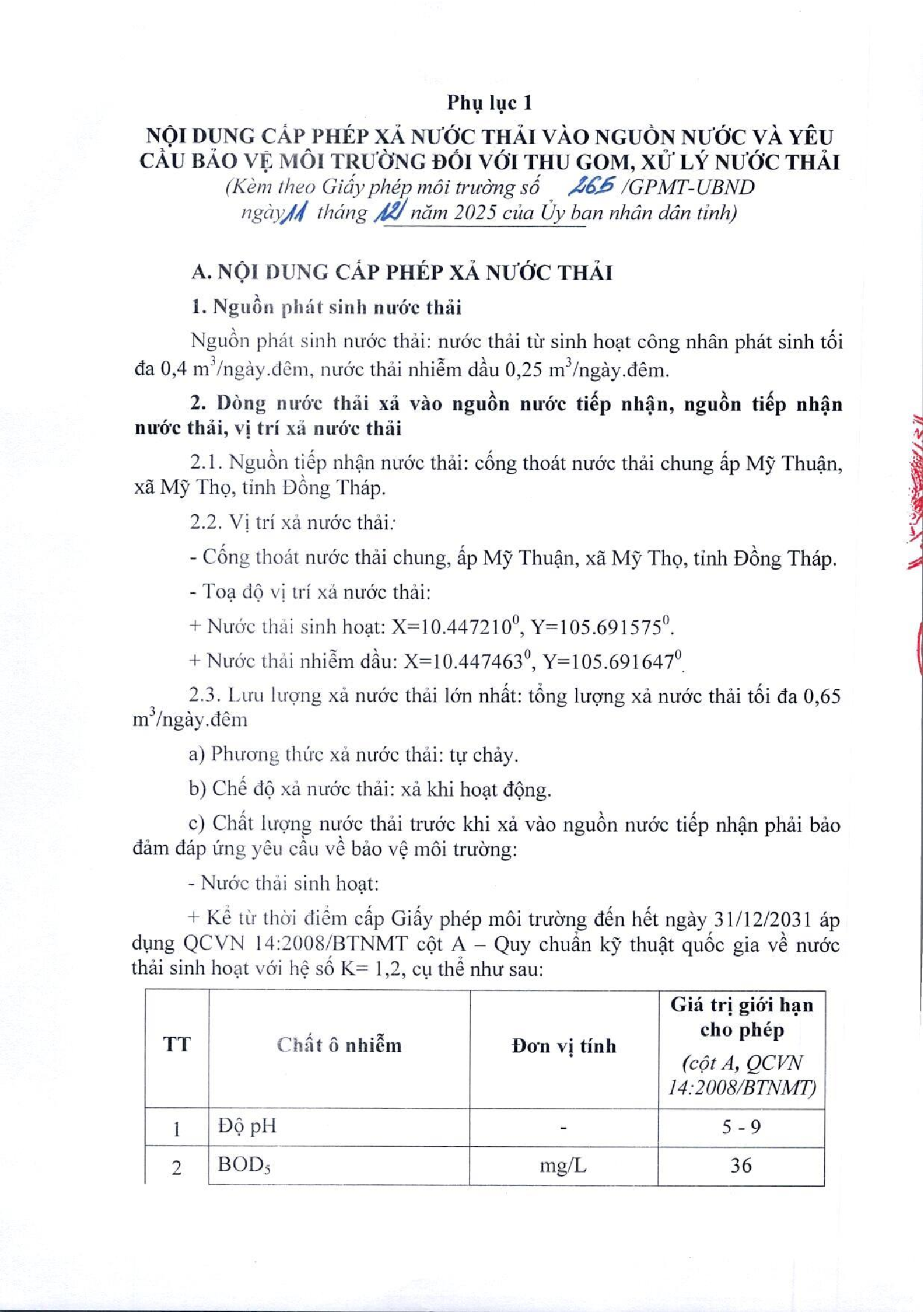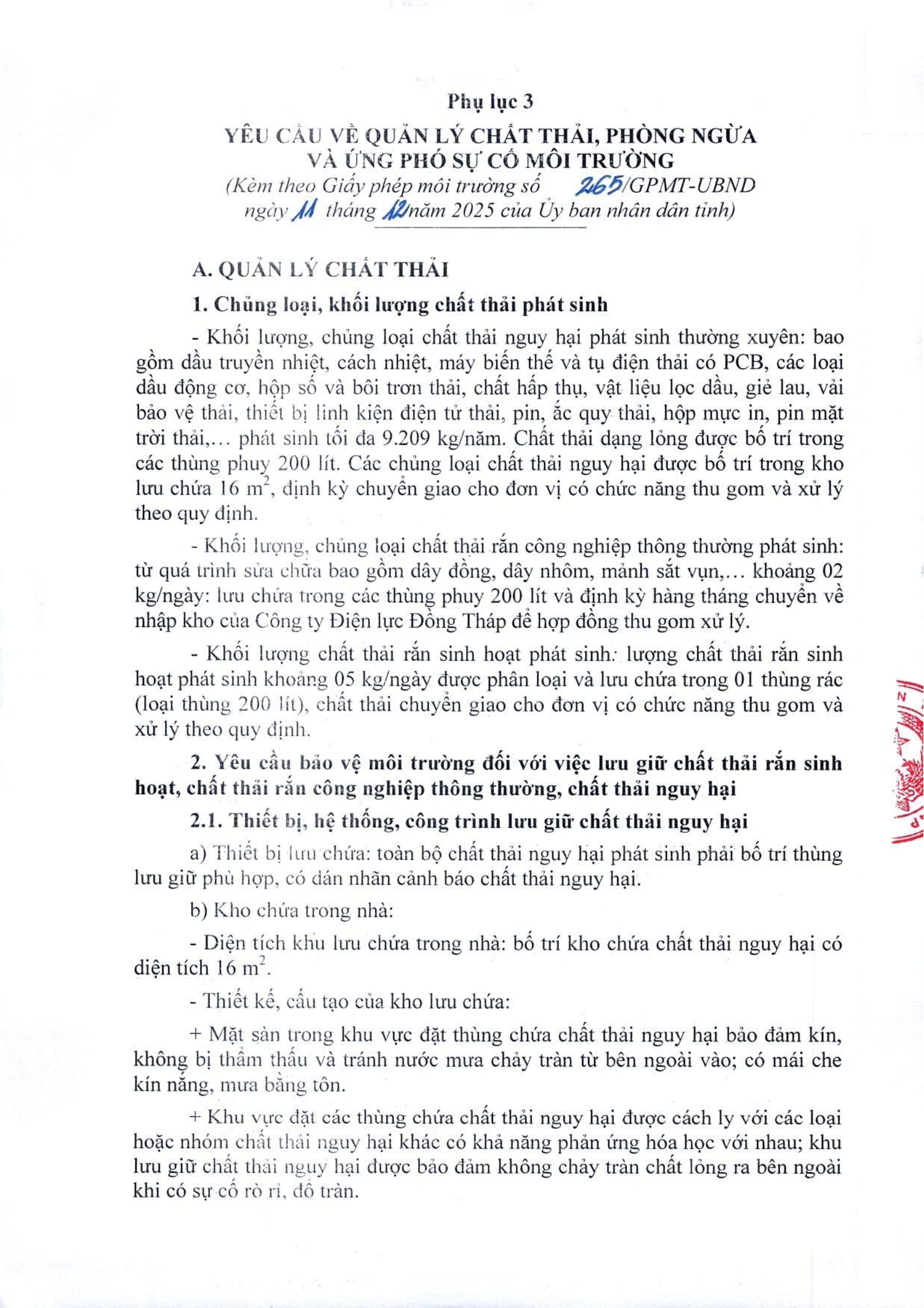 Giấy phép môi trường số 265/GPMT-UBND ngày 11 tháng 12 năm 2025 của UBND Tỉnh Đồng Tháp