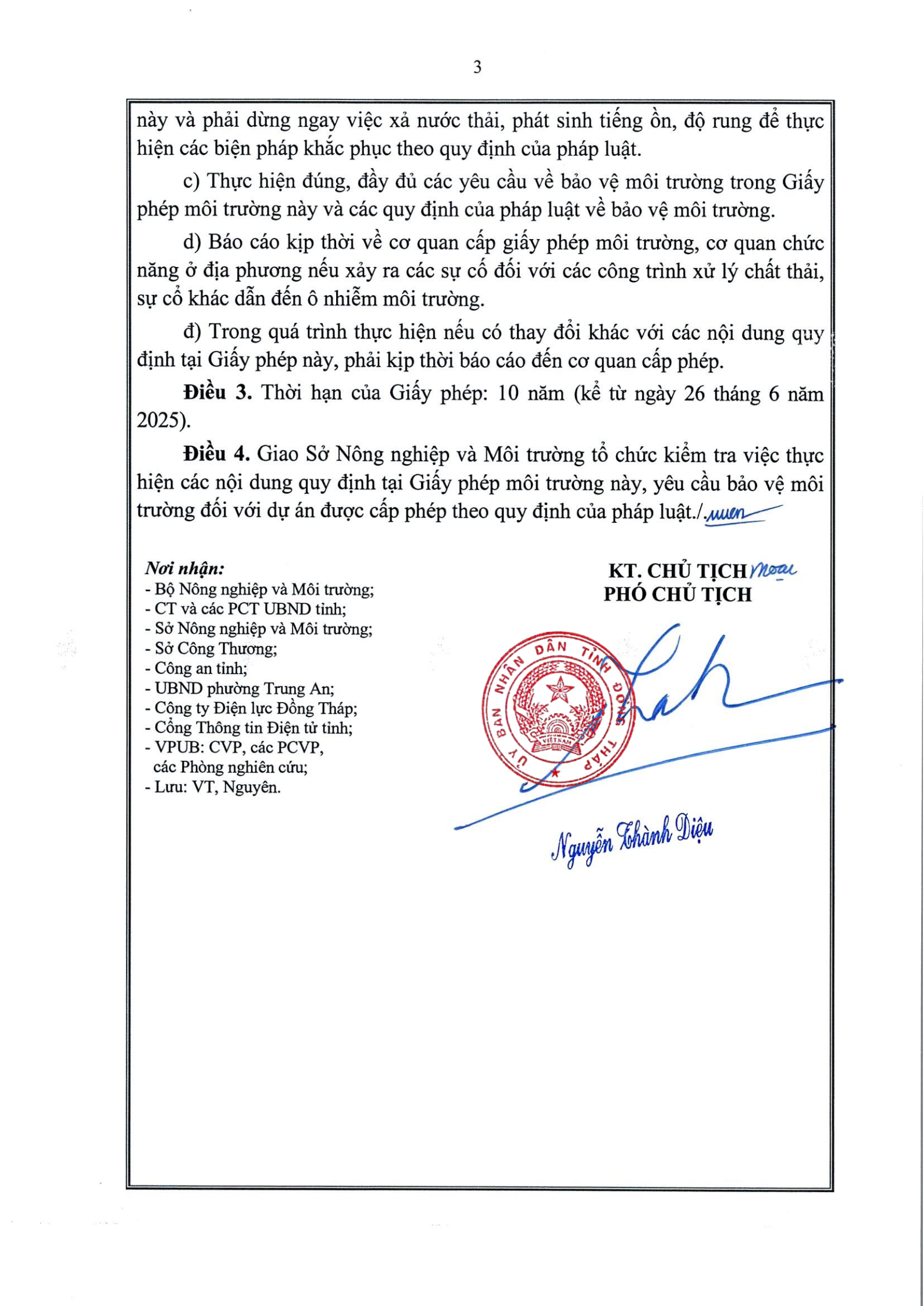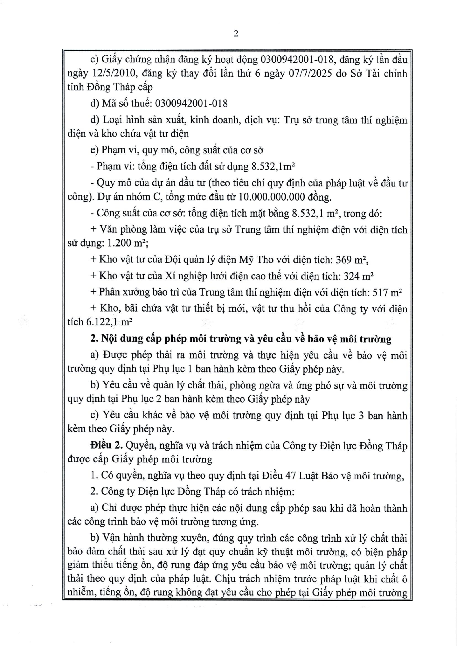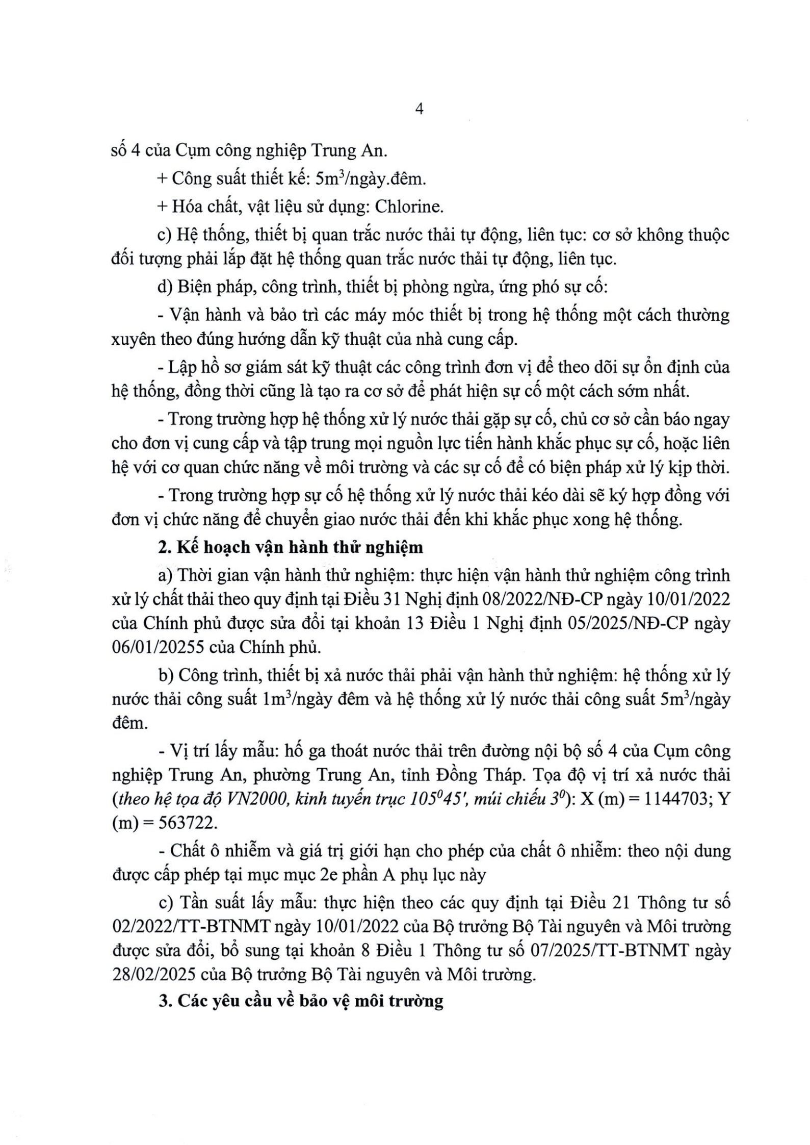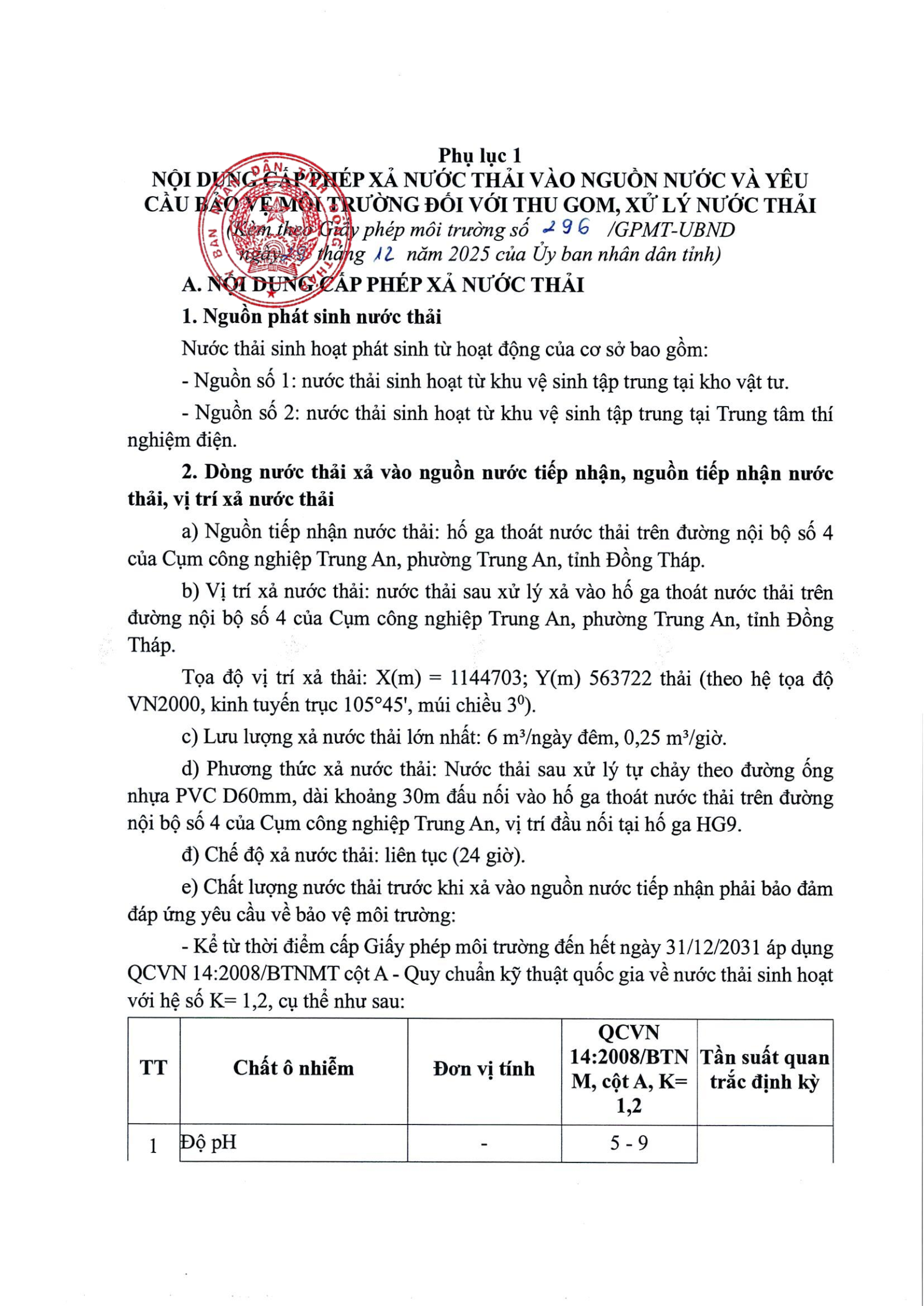 Giấy phép môi trường số 296/GPMT-UBND ngày 29 tháng 12 năm 2025 của UBND Tỉnh Đồng Tháp