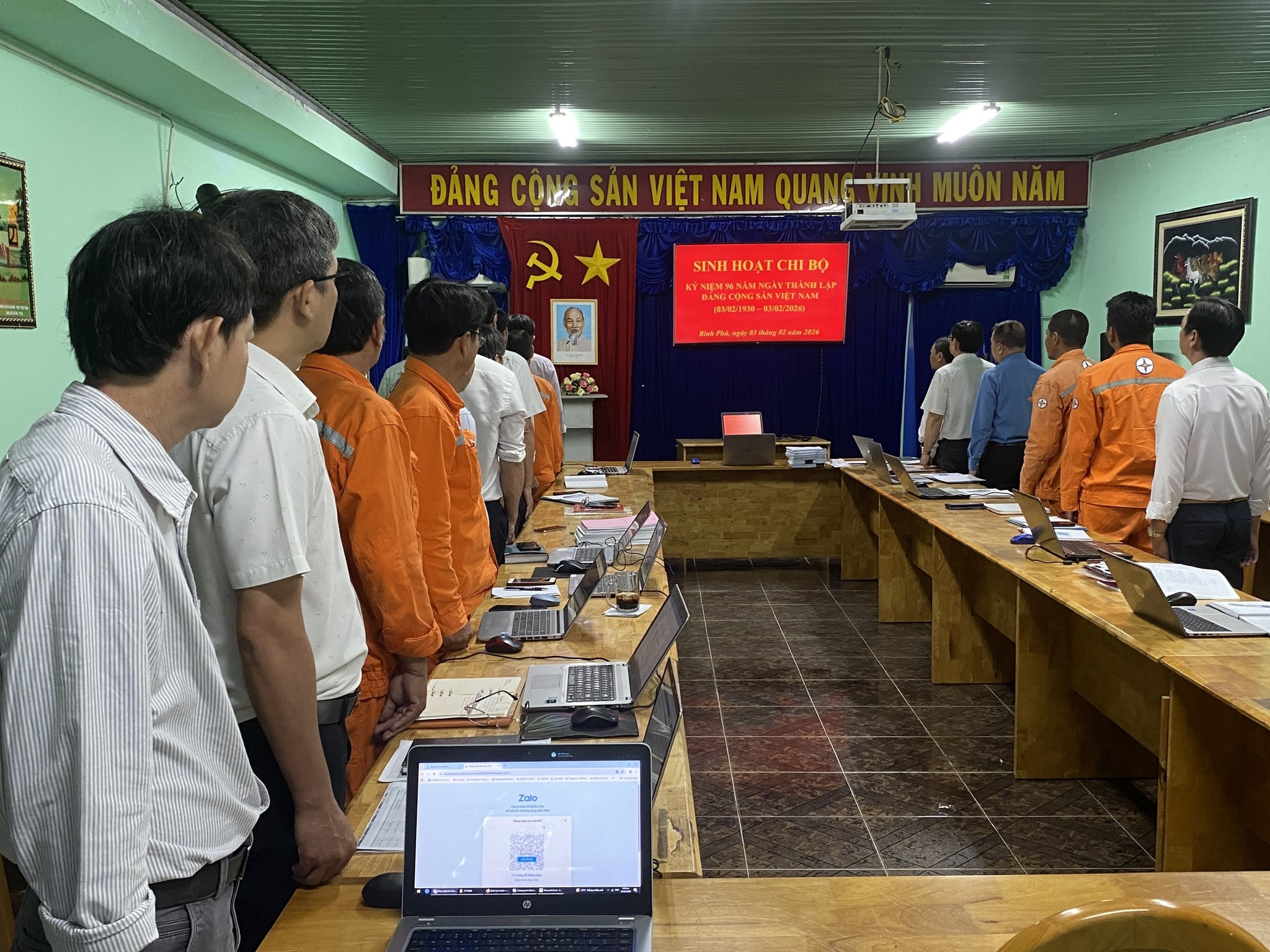 Hòa chung không khí trang nghiêm của những ngày đầu xuân, sáng ngày 03/02/2026, Chi bộ Đội Quản lý điện Cái Bè đã tổ chức buổi sinh hoạt chi bộ lệ kỳ kết hợp kỷ niệm 96 năm Ngày thành lập Đảng Cộng sản Việt Nam (03/02/1930 – 03/02/2026). Buổi sinh hoạt do ông Nguyễn Quốc Huy – Bí thư Chi bộ, Đội trưởng chủ trì với sự tham gia của toàn thể đảng viên.