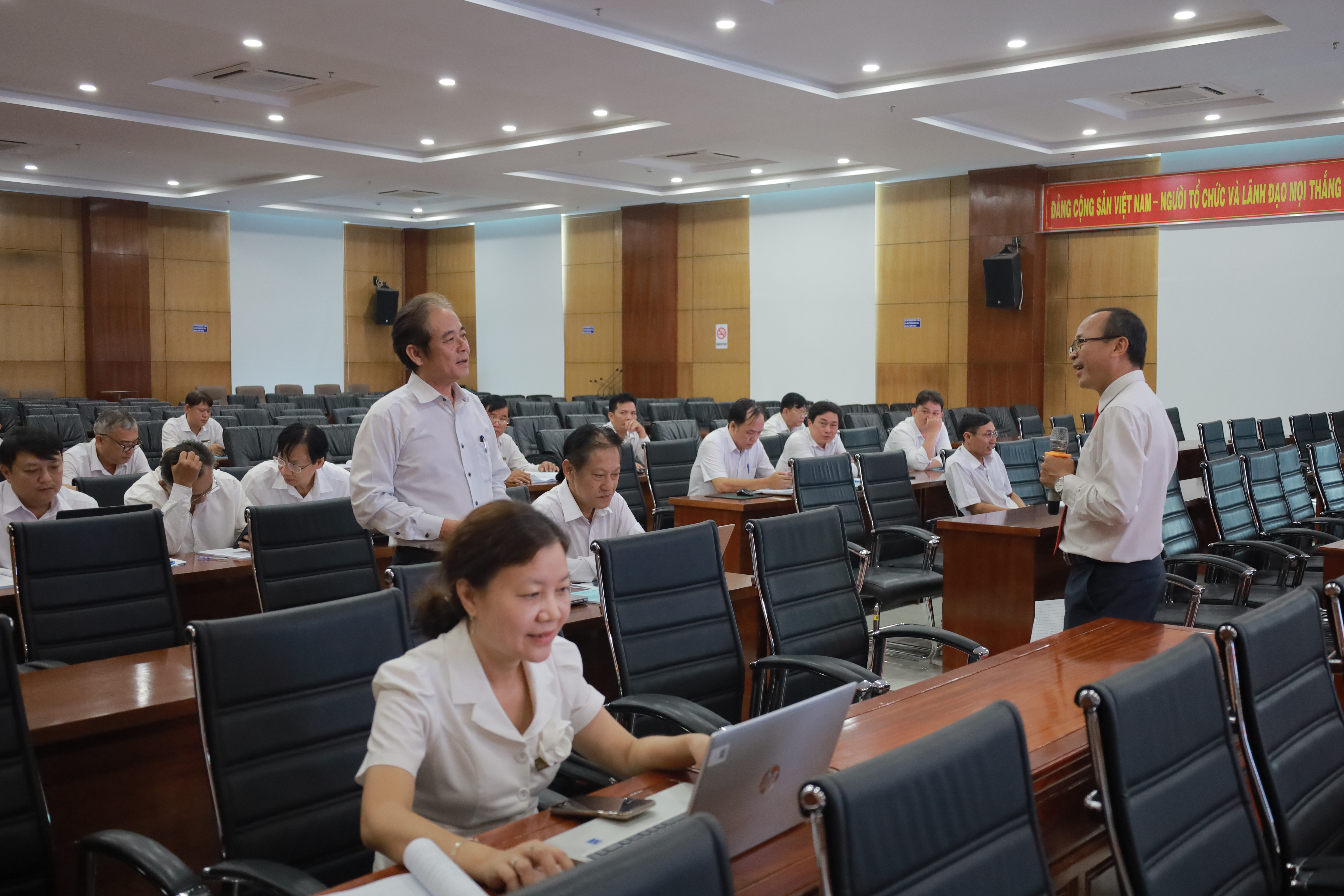 Các buổi học diễn ra trong không khí nghiêm túc tại Hội trường Công ty Điện lực Đồng Tháp. Bài giảng được yêu cầu biên soạn sát với thực tế, ngắn gọn, dễ hiểu. Giảng viên tích cực áp dụng các hình ảnh, video clip minh họa sinh động nhằm giúp học viên dễ hiểu, dễ nhớ và ứng dụng ngay vào công việc.